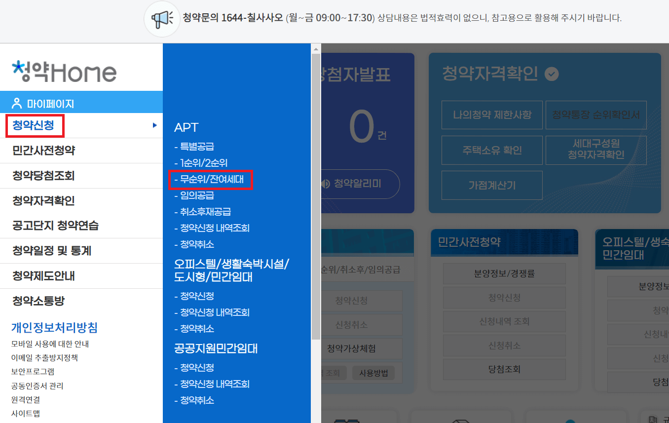 청약홈 홈페이지에 가서 청약신청> 무순위/ 잔여세대 로 가셔서 '디에이치 퍼스티어 아이파크' 를 클릭하시면 됩니다.